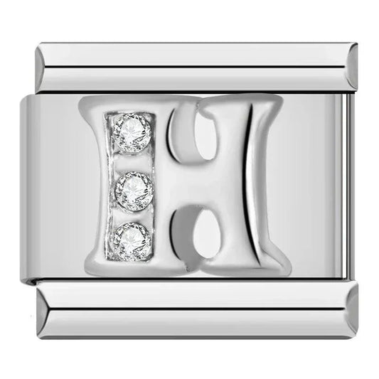 Letter H with Stones, on Silver