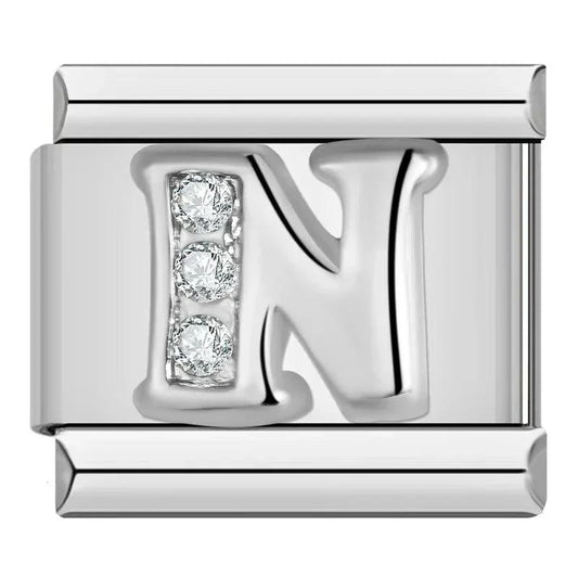 Letter N with Stones, on Silver