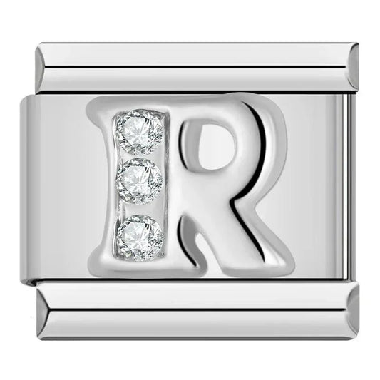 Letter R with Stones, on Silver